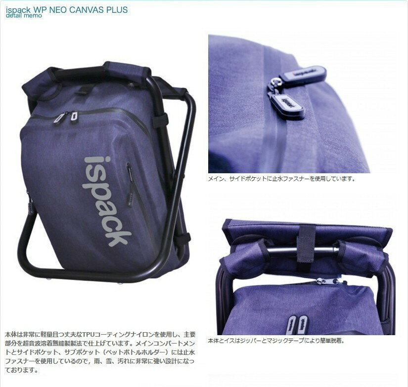イスパックWP ネオキャンバスプラス IS-WP803 インディゴブルー 【特長】 ispack WPネオキャンバスプラスはペットボトルホルダーが付いた防水イスパックです。